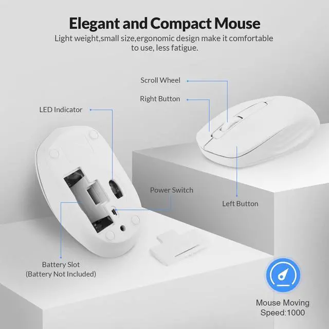 (Note: Batteries are not included in package. ) ^^ Wireless Optical MouseSlim size wireless mouse DPI is 1000,, and easily cursor sensitivity and track it more smoothly on a variety of surfaces. With ergonomic designs key caps, more smooth typing, comfortable typing in the office or at home.