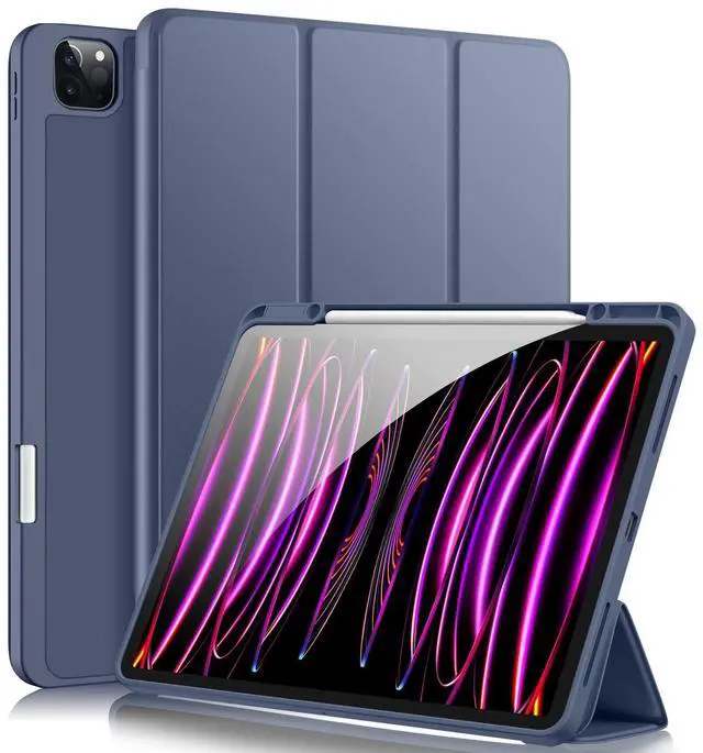 Akkerds Compatible with iPad Pro 12.9 Case 6th/5th/4th/3rd Generation with Pencil Holder, Trifold Stand Smart Cover with TPU Back for iPad 12.9 Pro Case 2022/2021/2020/2018,Auto Wake/Sleep, Blue Gray
