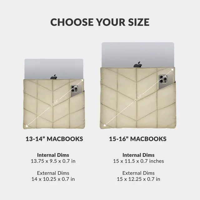• FITS 13-14 MACBOOKS: The UZBL Puffy Sleeve compatible for all MacBook Air 13 inch Devices & MacBook Pro 14 inch Devices M1 M2 M3 M4. Interior dimensions 13.75 x 9.5 x 0.7 inches