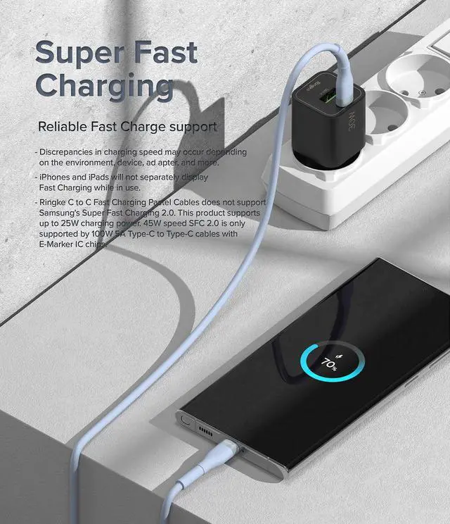 Ringke USB C to USB C Pastel Cable ( 6.6 FT), USB Type C to C Fast Charging Charger Cord Car Carplay Cable Compatible with iPhone 16 and 15 Series, Galaxy, Pixel, Laptops, and Tablets - Blue