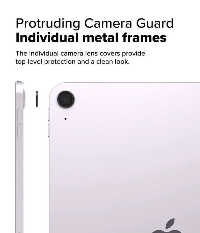 High-performance 0.33 mm glass covers for the rear cameras ^^ Comes in easy-to-install individual pieces ^^ Superior aluminum alloy frame enhances protection and style ^^ Anti-fingerprint coating with side-only adhesives ^^ Compatible with cases with wide camera cutouts only