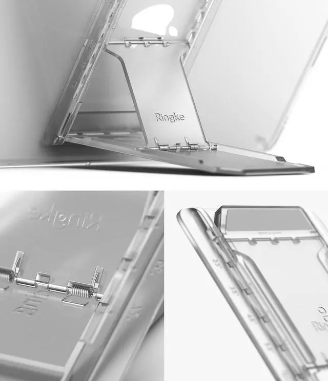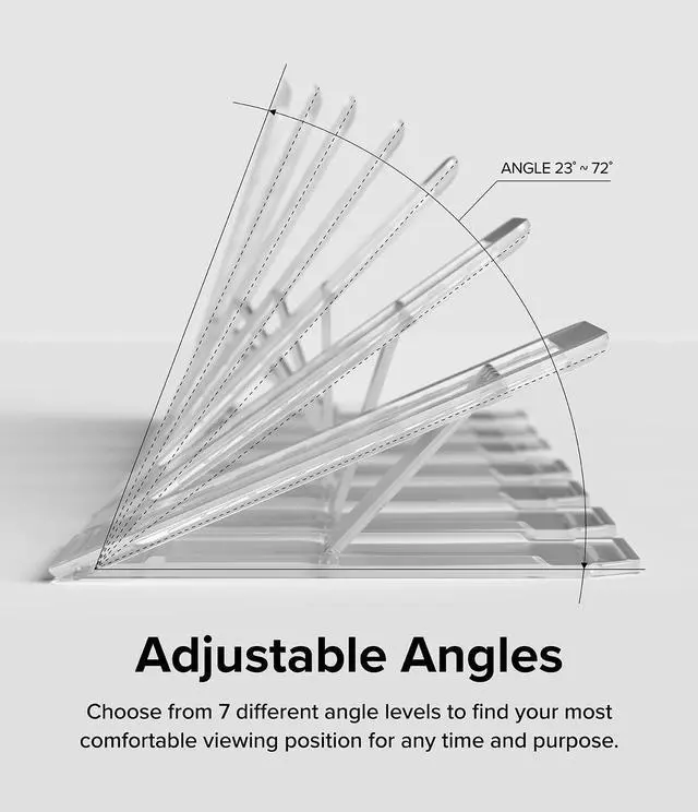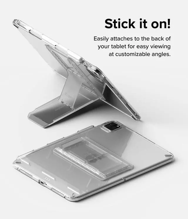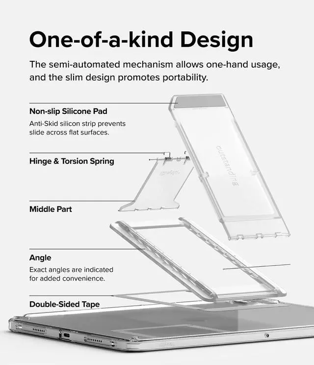 Tablet stand with a lightweight, minimalist design for everyday use ^^ Semi-automatic spring-powered kickstand for one-touch open & close ^^ Adjust to 7 default angles for the most comfortable viewing experience ^^ Easily stand your tablet both horizontally and vertically with the anti-skid silicone pad ^^ Only for use with a case. Designed to fit all tablets with a screen size between 8" - 13"