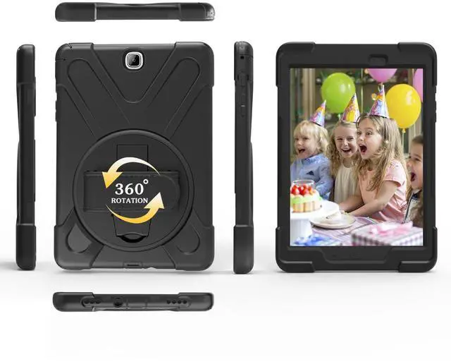 Galaxy Tab A 9.7 Case KIQ Full-Body Shock Proof Hybrid Heavy Duty Armor Protective Case for Samsung Galaxy Tab A 9.7 2015, SM-T550 with Kickstand and Screen Protector (Shield Black)