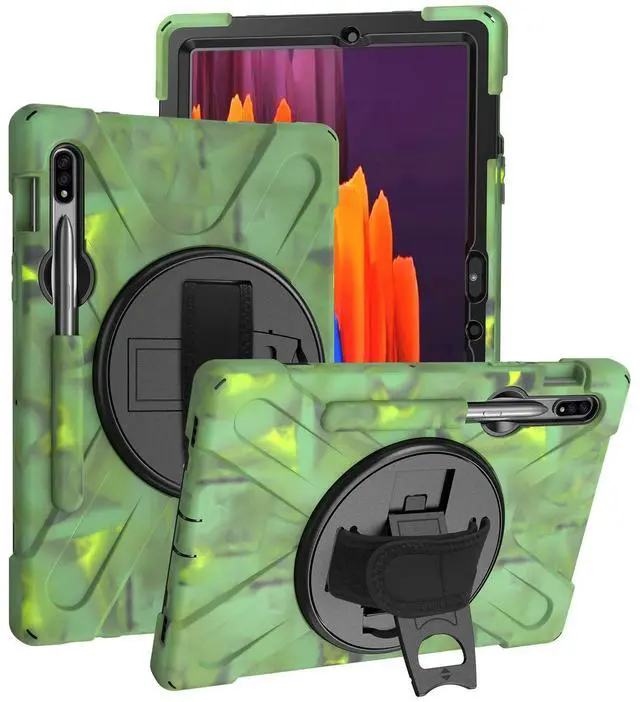 KIQ Shield Series for Samsung Galaxy Tab S7 FE Case Galaxy Tab S8 Plus Case Heavy Duty Shockproof Case w/S Pen Holder for Samsung Tab S7 fe 5G case 12.4 Inch 2020 SM T970 X800 T730 - Camo