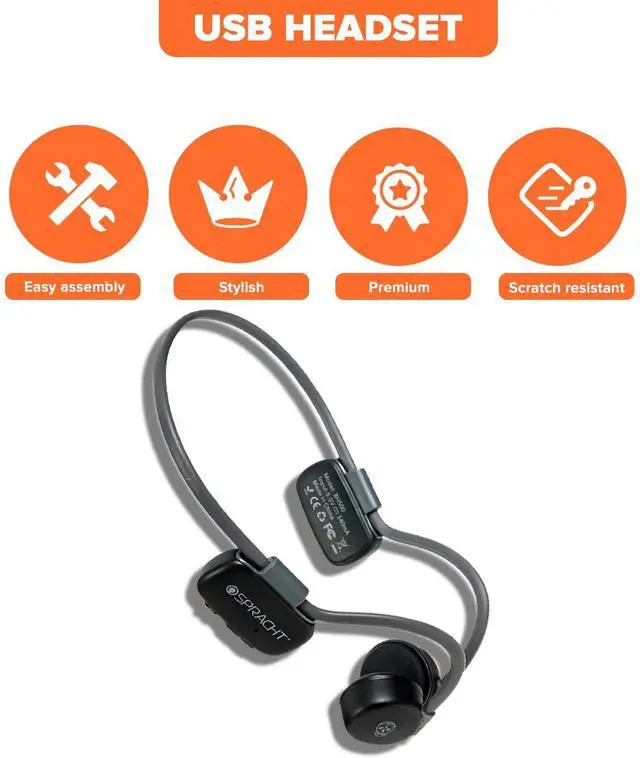 Spracht BH500 Bone Conduction Headphones Bluetooth with USB Cable | Bonehead Sport Waterproof Headphones for Outdoor Activities | IPX6 Conduction Headphones Wireless 5+ Hour Playtime, Voice Assistant