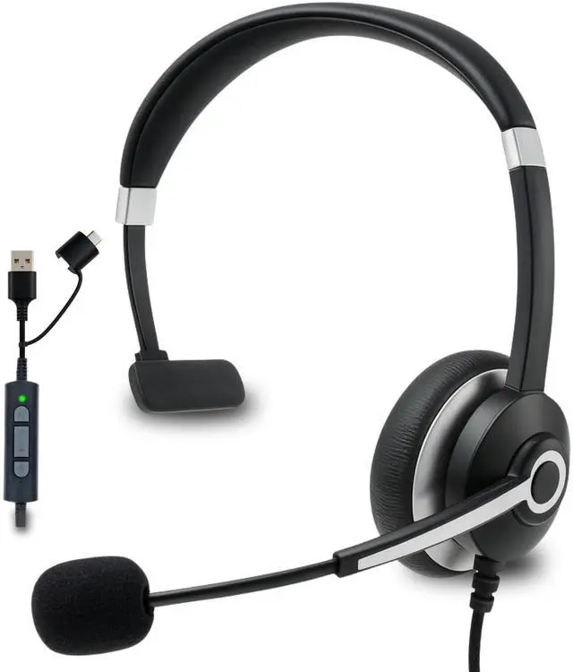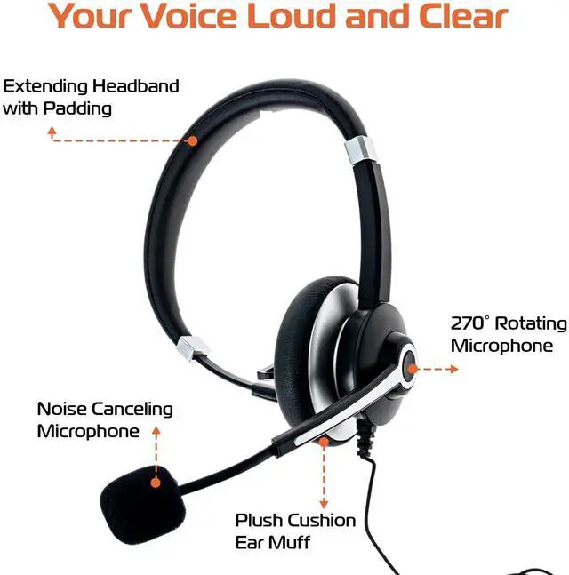 ^^ ALL DAY COMFORT: Spracht wired headphones with mic include a 270 swivel microphone for use on either side, plus soft leatherette cushions that reduce heat and sweat. The adjustable usb headset with microphone for pc headband ensures a secure fit for most users.