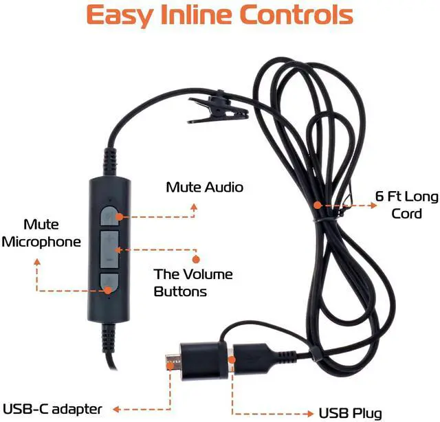 ^^ CONVENIENT CONTROLS: Integrated volume adjustment and mute controls for both speaker and microphone located on the 6-foot USB cord