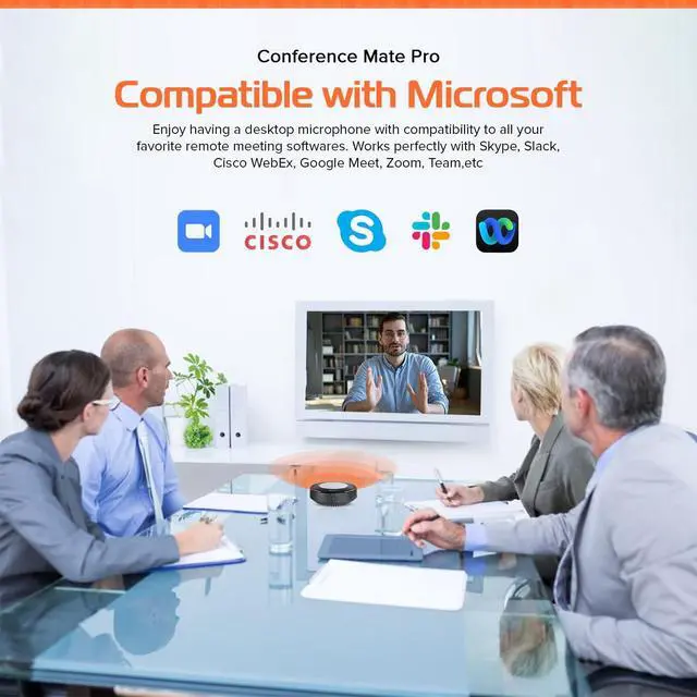 MULTI-MICROPHONE VOICE PICKUP: The greatest voice pickup by any desk mic. 6 omnidirectional microphones allow for clear voice pickup. Enjoy optimized clarity and volume, your voice is automatically balanced to make up for differences in volume and distance from the Bluetooth speakerphone. Instantly turn your home or office into a conference room and enjoy an immersive meeting experience. ^^ COMPATIBLE WITH MICROSOFT TEAM, ZOOM, AND