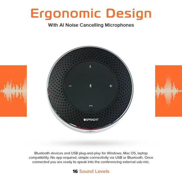 MANY MORE: Enjoy having a desktop microphone with compatibility to all your favorite remote meeting softwares. Works perfectly with Skype, Slack, Cisco WebEx, Google Meet, Zoom, Team, Slack, etc. Impress your colleagues on any platform with immersive sound quality from your Spracht desk microphone. Enjoy a strong battery that handles over 13 hours of call time from our 7Watt speaker to support all your long meeting days. ^^