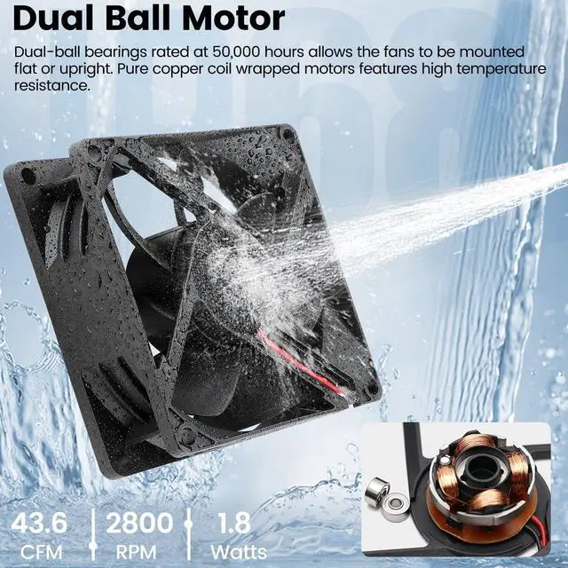 Waterproof fan, IP68 fan, Outdoor fan, Dustproof fanNew from GDSTIME is an improved range of DC waterproof fans from GDSTIME that, not only cooling but also Waterproof & Dustproof! GDSTIME IP68 DC Fans are designed for durable protection in outdoor applications and harsh industrial areas. Ideal for outdoor environments, these IP68-rated fans are exposed to water, dust particles, unexpected corrosion, and high humidity that causes electrical devices to malfunction. The GDSTIME 80mm waterproof fan series provides protection to IP68 while delivering 43.6CFM with a life expectancy of 50, 000 hours at 40C thanks to a high-quality dual ball bearing system.
