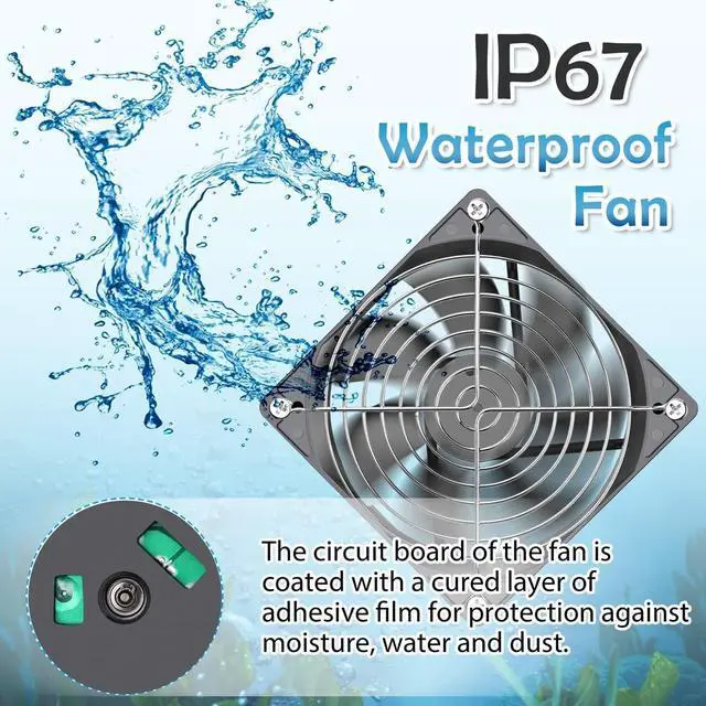 Last Dual Ball Motor: The fan's pcb board and whole motor are iscoated with a cured layer of adhesive film for protection against moisture, water and dust; ip67 fan are designed for maximum airflow and heat dissipation to keep the air circulating ^^ Easy to