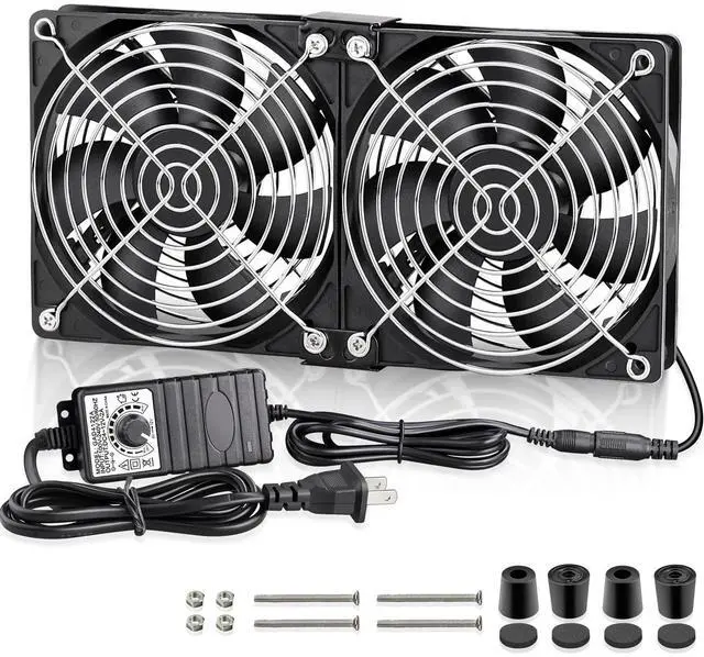 Adjustable Speed Control: Variable speed controller with fine tuning knob steplessly adjusts output voltage from 4V to 12V (Max 2A/24W), enabling dual 120 mm fans speed from low-speed mute to high-speed strong heat dissipation ^^ 100V to 125V