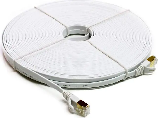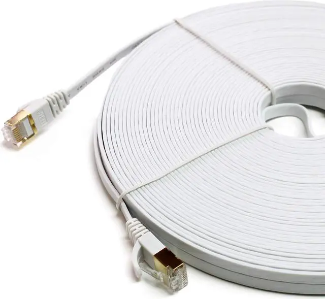 Tera Grand - 75FT - CAT7 10 Gigabit Ethernet Ultra Flat Patch Cable for Modem Router LAN Network, Gold Plated Shielded RJ45 Connectors, Faster Than CAT6a CAT6 CAT5e, White