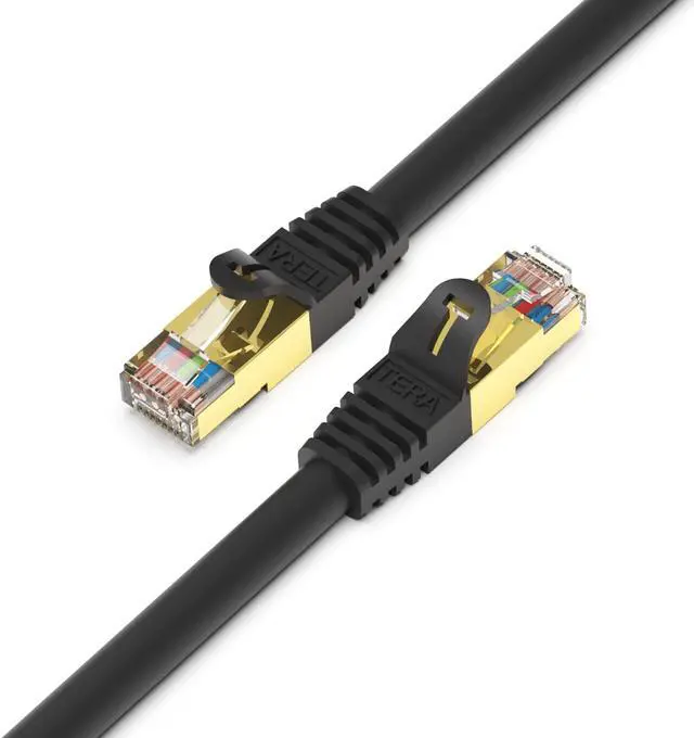 Tera Grand - Premium CAT7 Double Shielded 10 Gigabit 600MHz Ethernet Patch Cable for Modem Router LAN Network, Gold Plated Shielded RJ45 Connectors, 50 ft Black