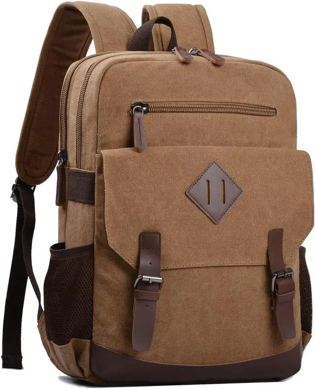 Canvas Vintage Laptop Backpack for Women Men, College Bookbag Fits 15.6 Inch Laptop (Coffee)