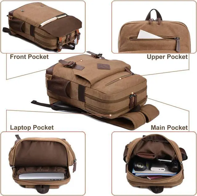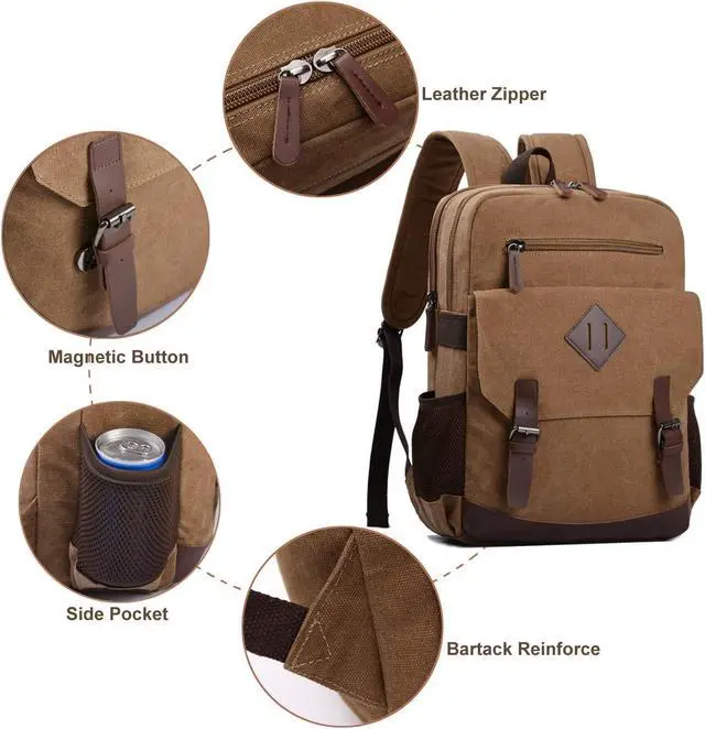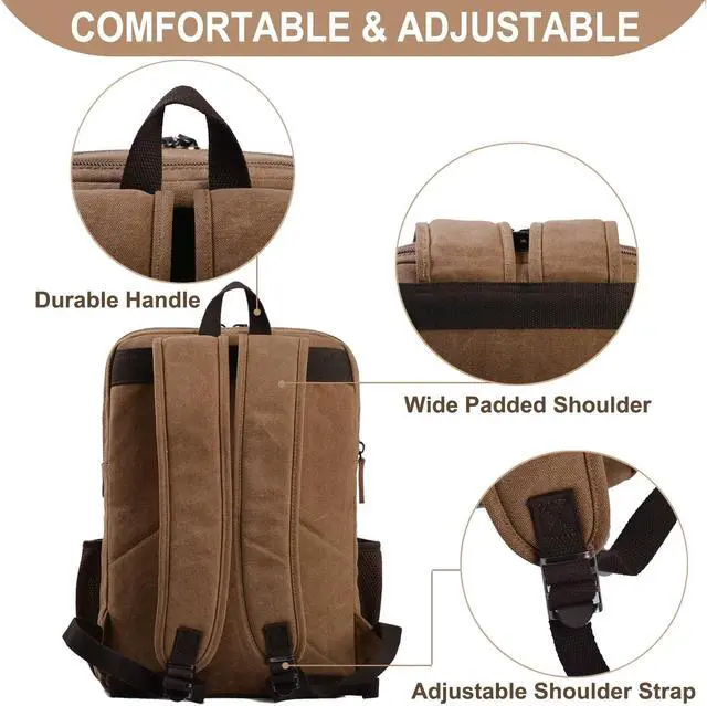[(Comfortable & Durable)] :This travel laptop backpack is made of high quality ripstop canvas, PU leather trim.Every detail in this vintage backpack speaks of the care and effort that has gone into making this laptop backpack durable, vintage and functional. Adjustable shoulder belts with thickening breathable mesh sponges are shake-resistant, and relieve the pressure on your shoulders.