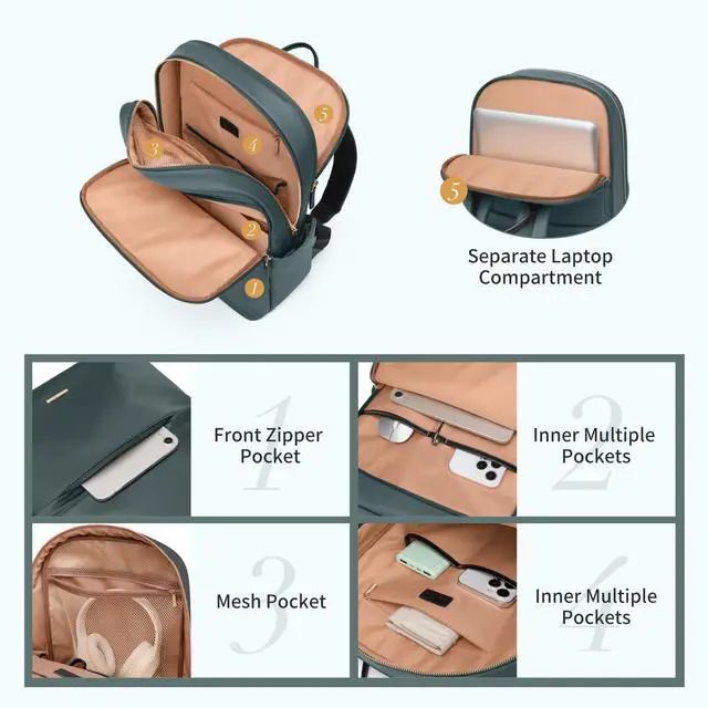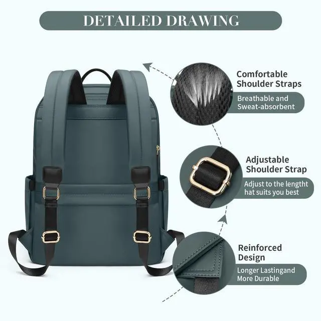 GOLF SUPAGS Women Laptop Backpack Casual Daypack for Work Travel College Backpack Purse Fits 14 Inch Notebook (Atrovirens)