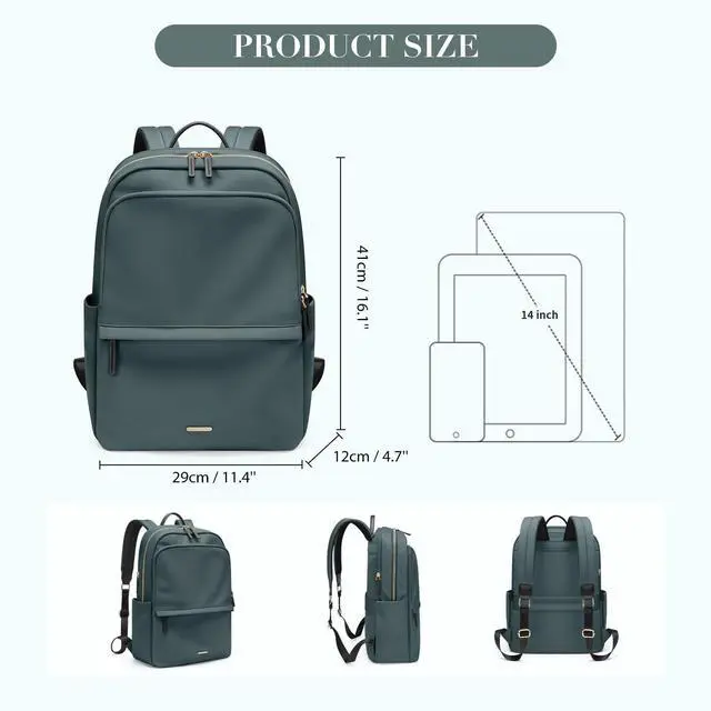 Spacious and Organized - This new upgrade women backpack preserves its original features while enhancing the details. The added bonus is a separate laptop compartment that can be adapted to a 14 inch laptop. We also have the extensibility of the lateral pockets. It's not that big, but it offers enough space for everything you need.