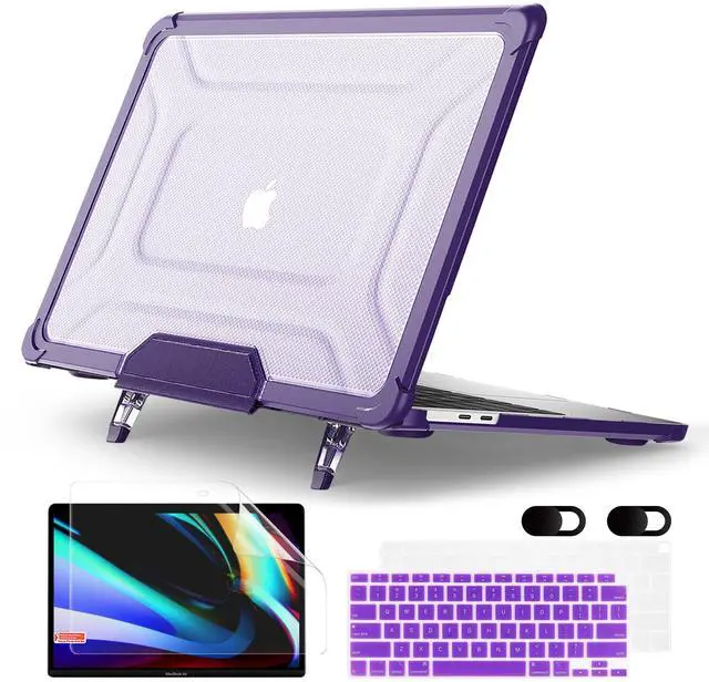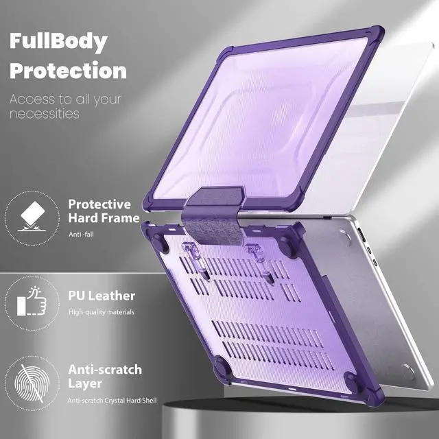 MEEgoodo Case for MacBook Air 13 inch 2021 2020 2019 2018 A2337 M1 A2179 A1932 with Heavy Duty Rugged Shockproof,Laptop Hard Shell Case with TPU Hard Frame & Fold Kickstand & Connection Design, Purple