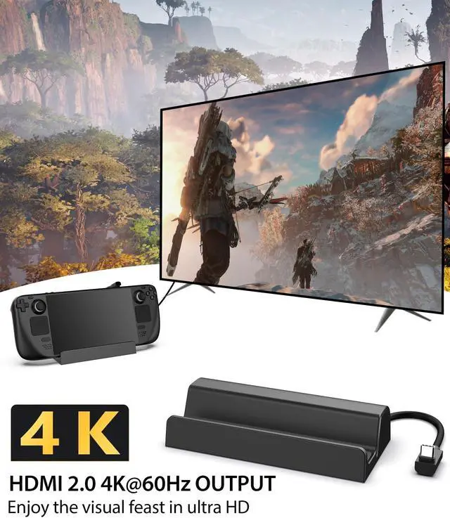 6-in-1 Docking Station for Steam Deck: This 6-in-1 is for Valve Steam Deck Dock Docking Station, comes with an HDMI 2.0 4K@60Hz output, a Gigabit Ethernet input, 3 USB 3.0 5Gbps high speed data ports and a 100W PD USB-C full speed charging port. 6-in-1 steam deck docking station combines the hub and stand together perfectly, keep desktop neat and organized.