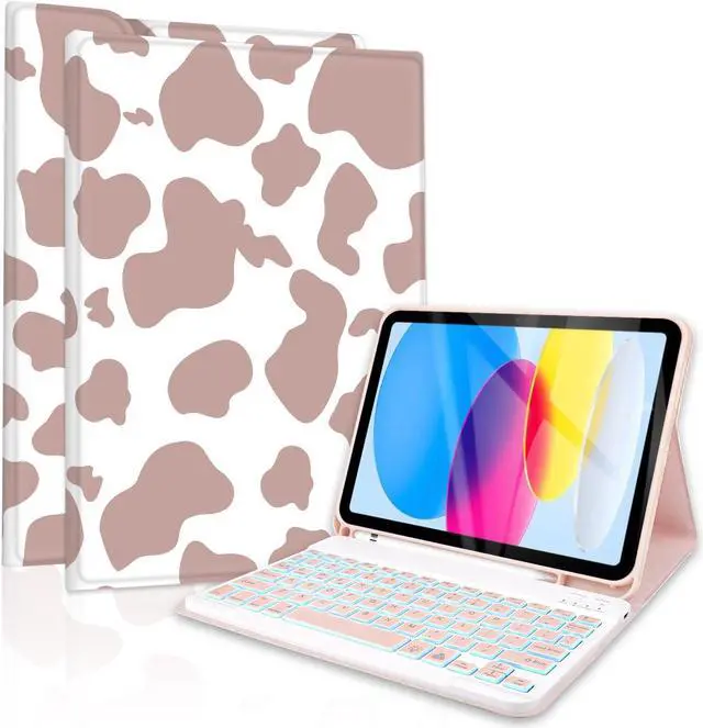 TopPerfekt for iPad 10th Gen 10.9 inch (2022) case iPad (A16) 11th/ 10th Gen Case 11'' (2025) with 7-Color Backlights Bluetooth Keyboard, Pencil Holder, Detachable, Rechargeable - Brown Cow