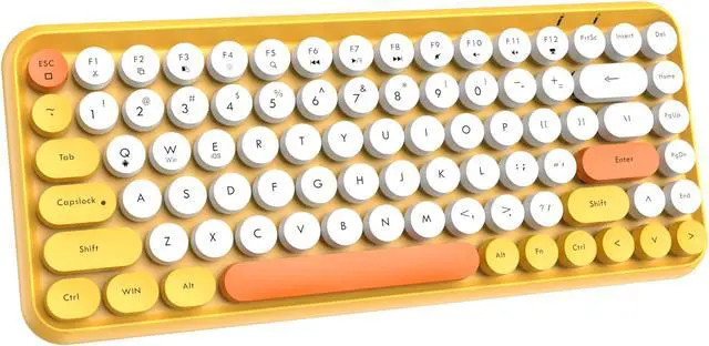 Compact & Fashion Bluetooth Keyboard: This Bluetooth keyboard has 84 round keys. It is compact and easy to carry. The fashion shape is inspired by the retro elegant typewriter shape, the unique round keycap. Just press FN + C keys to enter Bluetooth mode.