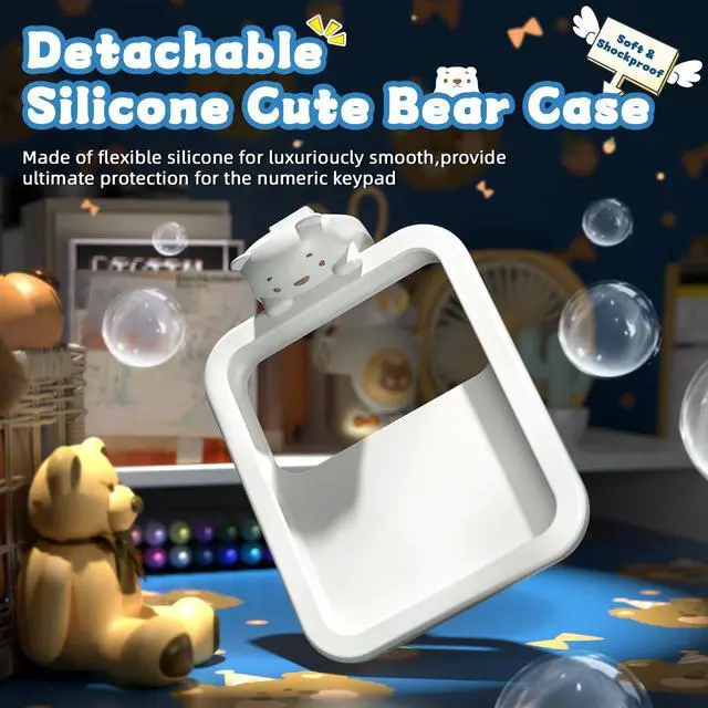 Cute Silicone Bear Design: The detachable Q-version bear case can not only decorate your desktop with visual enjoyment, but also store the USB receiver when not in use, ergonomic round keycaps bring a fun and comfortable typing experience, each keycap is detachable and easy to clean ^^ Compact 18-Key
