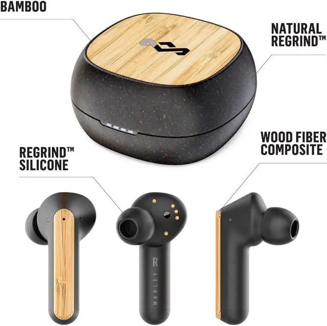 House of Marley Redemption ANC: Noise Cancelling True Wireless Earbuds with Microphone, Bluetooth Connectivity, 20 Hours Total Playtime, and Sustainable Materials, Signature Black