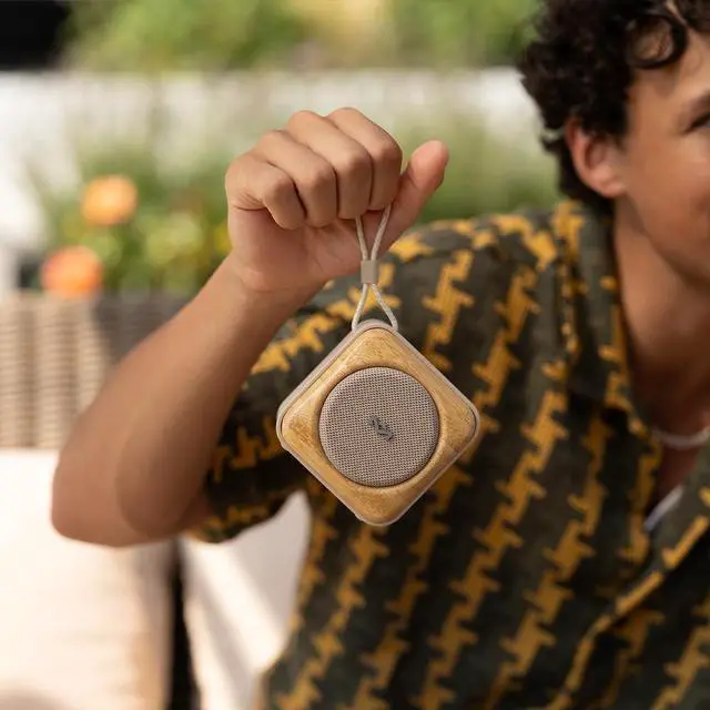 ^^ Sustainable Bamboo Design: Featuring sustainable bamboo accents, the Roots speaker combines natural style with eco-friendly materials.