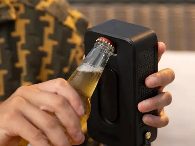 ^^ Bottle Opener: Be ready for any gathering with the convenient bottle opener built into the back of the Roots Solar speaker.