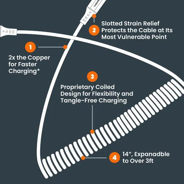 2x the Copper Versus a Leading Value Cable for Faster Charging ^^ Unique Coiled Design Ideal for Car & Travel ^^ Durable Fabric Finish ^^ Extended Strain Relief Protects the Cable at Its Most Vulnerable Point ^^ MFi-Certified Apple Lighting Connector