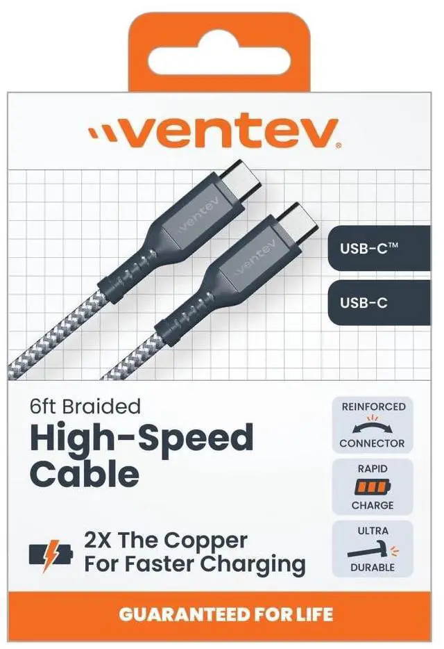 Braided USB-C to USB-C High Speed 6 Foot Cable, 2x the Copper Versus a Leading Value Cable for Faster Charging, Durable Fabric Finish, Universal USB-C Connector Compatible with Fast Charging Ports