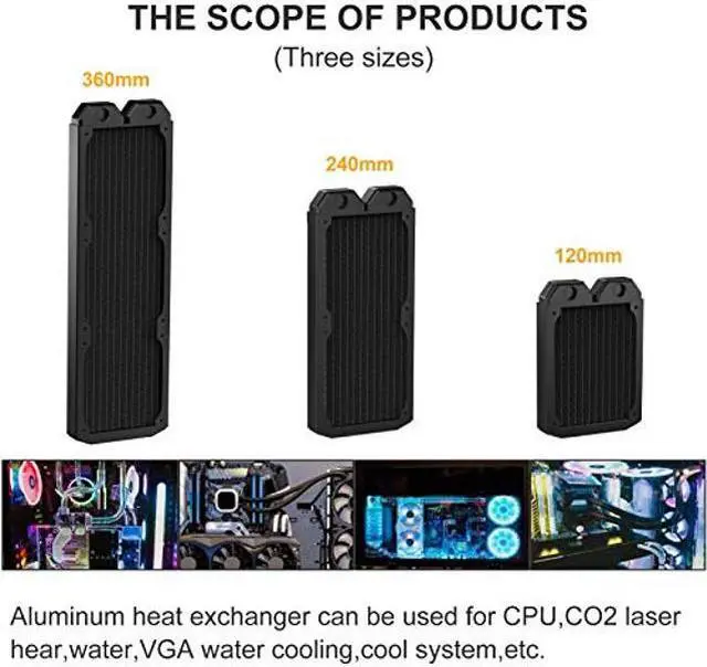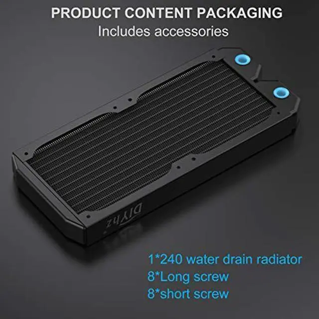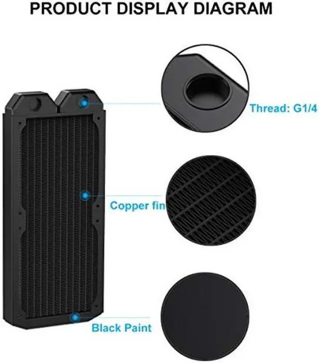DIYhz Water Cooling Computer Radiator, 12 Pipe Thick Copper Heat Exchanger Liquid Cooling Radiator G1/4 Thread Heat Row Sink 240mm for CPU PC Laser Water Cool System DC12V Black