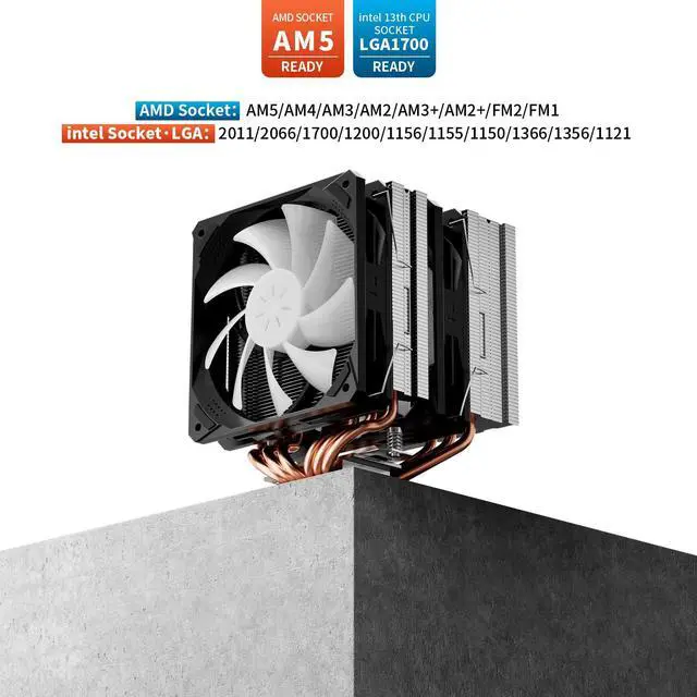 upHere D6SEC Dual Tower CPU Air Cooler with 6mm x 6 Copper Heat Pipes & Dual 120mm 5V ARGB PWM Fans (1600RPM, 68.2CFM ) for Intel LGA (2011/2066/1700/1200/1150/1121/1155/1156/1366) & AMD AM5/AM4
