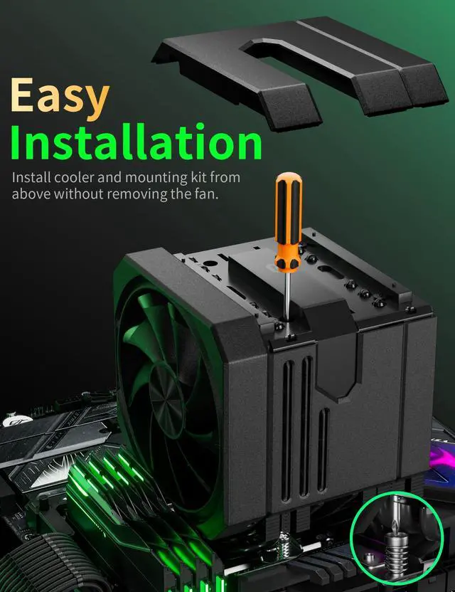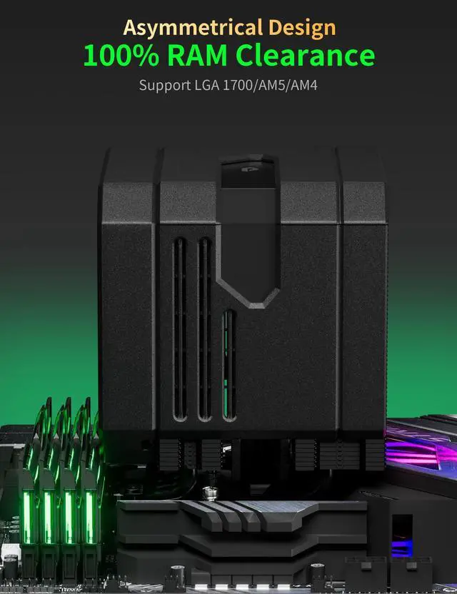 Easy Installation & Unblock RAM: Our cpu cooler for amd am5 features non-disassembly fan installation for hassle-free setup, allowing you to install the cooler without removing your motherboard or RAM. Designed with clearance for memory modules, ensuring compatibility with tall RAM modules and preventing obstruction of slots.