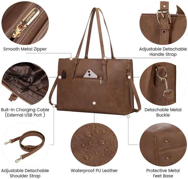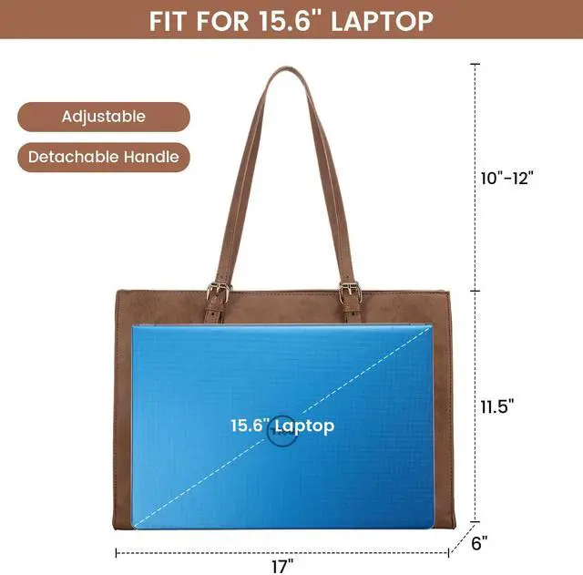 [(Large Capacity Laptop Bag)] The women laptop bag size in 17" L x 6" W x 11.5" H. The Computer bag is structured and roomy, and can accommodate a 15.6-inch laptop, thickened soft foam protective pad lining can fully protect your laptop from accidental impacts and scratches. In addition, the large-capacity shoulder bag can also store iPad, books, A4 files, mobile power, mobile phones, folders, passports, cosmetics, etc.It can carry all your essentials!