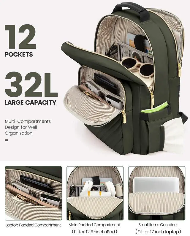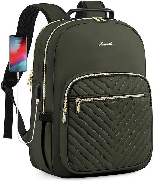 LOVEVOOK Laptop Backpack for Women, Travel Computer Work Bags with 17-inch Laptop Compartment, College School Student Bag Teen Backpacks For Girls, Outdoor Carry On Backpack Purse, Army Green