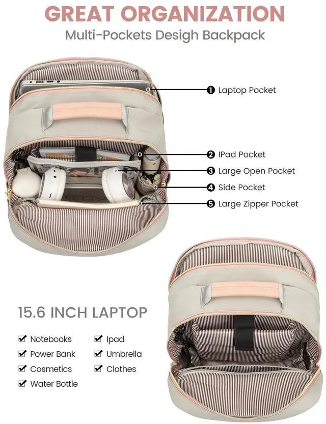 LAPTOP PROTECTIONThe laptop backpack is designed with 15.6-inch laptop separate compartments and a 12.9-inch iPad slot; with cushioned cotton sewn around, it maximizes physical protection of your electronic devices.