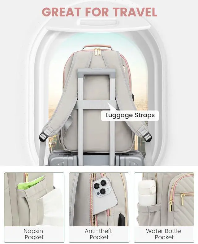 MULTI-COMPARTMENTS & POCKETSThis women's business work backpack is designed with 4 compartments and 17 pockets. Ample pockets keep your travel items organized.