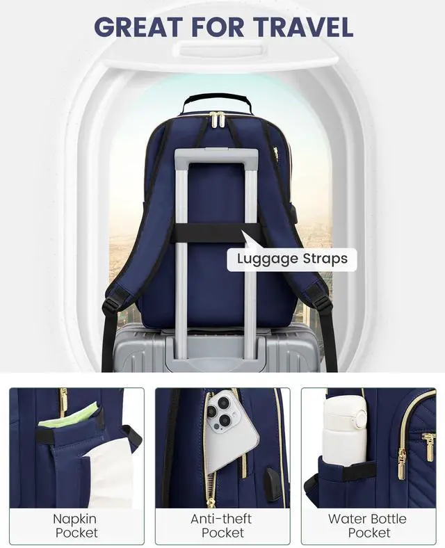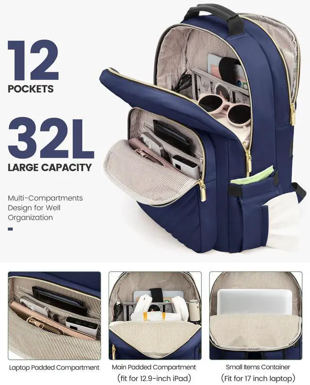 MULTI-COMPARTMENTS & POCKETSThis women's business work backpack is designed with 4 compartments and 17 pockets. Ample pockets keep your travel items organized.