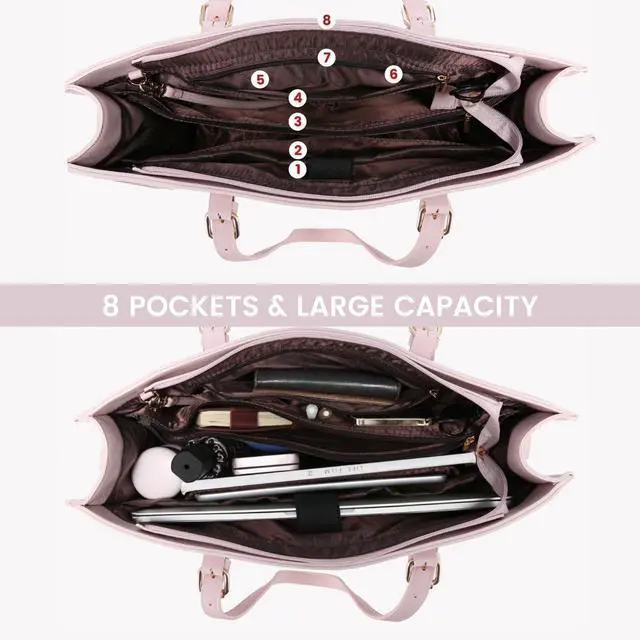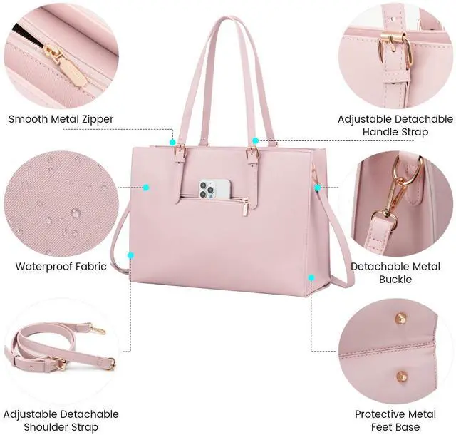 Professional work Bag, with adjustable Handles, long cross-body straps, USB Charging Port, back-pocket, key-leash, metal feet