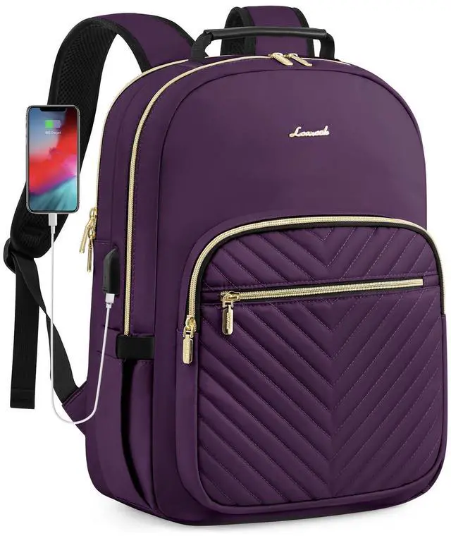 LOVEVOOK Laptop Backpack for Women, Travel Computer Work Bags with 17-inch Laptop Compartment, College School Student Bag Teen Backpacks For Girls, Outdoor Carry On Backpack Purse, Deep Plum