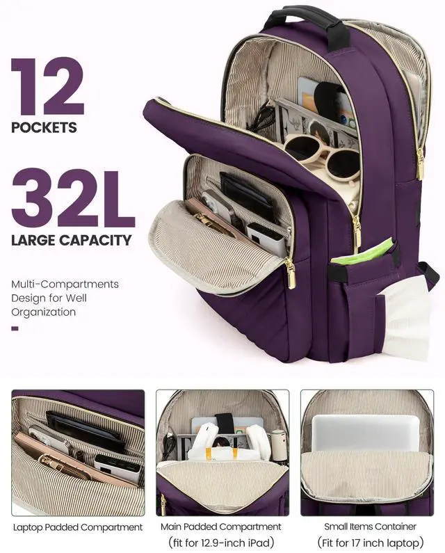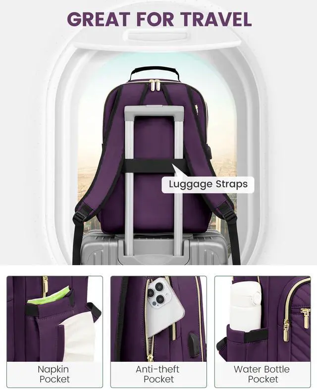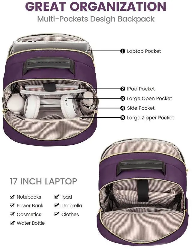 MULTI-COMPARTMENTS & POCKETSThis women's business work backpack is designed with 4 compartments and 17 pockets. Ample pockets keep your travel items organized.