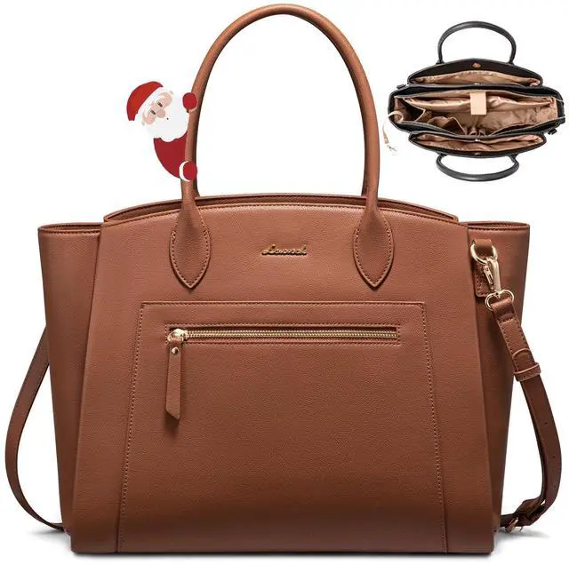 (Size: [19in * 6in * 14in]) ^^ 5 Separate Compartments & 11 PocketsFeatures padded laptop slot, tablet pocket, front slip pockets (with key leash), pen holders, and exterior zipper pocketeverything has its place. ^^ Built to LastScratch-resistant, waterproof Vegan leather materials with reinforced handles and metal feet for everyday durability. Smooth zippers and a magnetic clasp provide quick access with secure, reliable performance you can trust. ^^ Ready for Work, College, TravelPerfect as a teacher bag, business purse, computer tote, or travel work bagone bag goes everywhere. ^^ Gift-Worthy for Stylish WomenAn elegant, functional gift for moms, teachers, professionals, construction worker or studentsstyle meets practicality.
