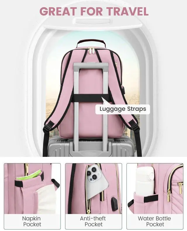 • MULTI-COMPARTMENTS & POCKETSThis women's business work backpack is designed with 4 compartments and 17 pockets. Ample pockets keep your travel items organized.