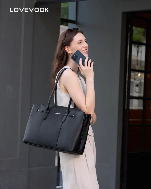 Dual-Compartment CapacityUnlike most work tote bags for women with only one divider, this LOVEVOOK laptop bag for women features two roomy compartments. Perfect for keeping a 17 laptop, A4 folders, and daily work essentials neatly organized. ^^ Smart Multi-Pocket DesignDesigned with a padded laptop sleeve, tablet pocket, A4 file slot, pen holders, and small zipper pockets, this tote bag helps professionals stay organized. A reliable work bag for women who need both function and elegance. ^^ Elegant Pebble-Grain StyleCrafted from soft pebble-grain PU leather, this tote bag for women combines durability with sophistication.