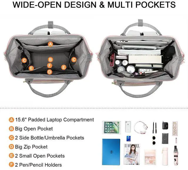 Look: Made of high-quality and sturdy nylon material, this waterproof backpack for women features reinforced seams and steel frame of the main compartment which keep the perfect shape of the bag. Perfect for university, travel, business, daily use and outdoor activities. An ideal choice as work backpack purse, nurse bag, doctor backpack, teacher backpack, travel bag, etc.