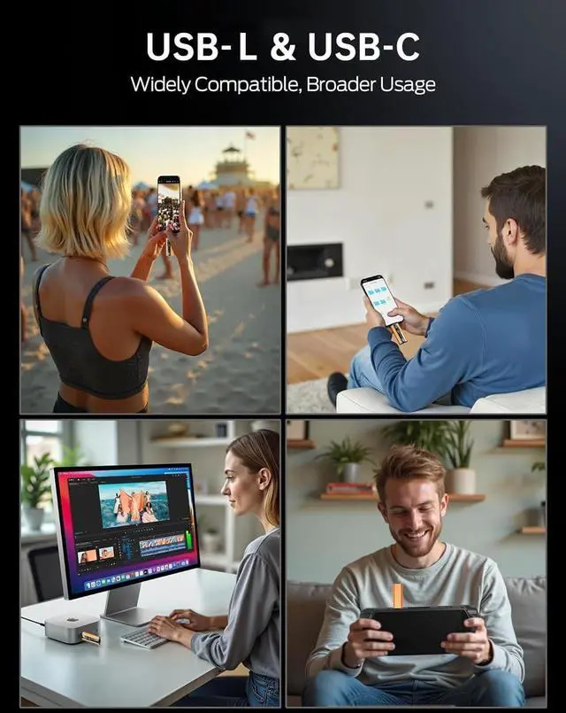 (Note: For iPhone/iPad No App Required; For Android only Needs OTG Enabled, No Extra App. ) ^^ Universal Compatibility with Dual InterfacesFeaturing USB-C, USB-L, USB ports adapter, this Compatibility iPhone photo storage stick connects seamlessly with iPhone/iPad devices, Android OTG phones, laptops, and tablets. No iCloud fees, no internet requiredjust plug in and move files freely between your phone, computer, and other devices. ^^ Blazing Fast Transfers AnywhereFeaturing upgraded high-speed chips, this portable phone external storage drive enables instant mass file transfersup to 30 MB/s read speed and 15 MB/s write speedno WiFi or data cables required. Save time sharing photos, moving large video projects, whether youre traveling, working, or creating content on the go. ^^ Easy Backup, Enjoy Anytime AnyplacePlug-and-play & simple to operatequickly back up videos, photos, contacts and documents without tedious copying or pasting. No third-party apps required; just plug the drive into your iPhone, iPad or Android device and operate via the "Files" app. You can also share files directly from the iPhone photo stick to social media, instantly sharing wonderful moments with friends and family.