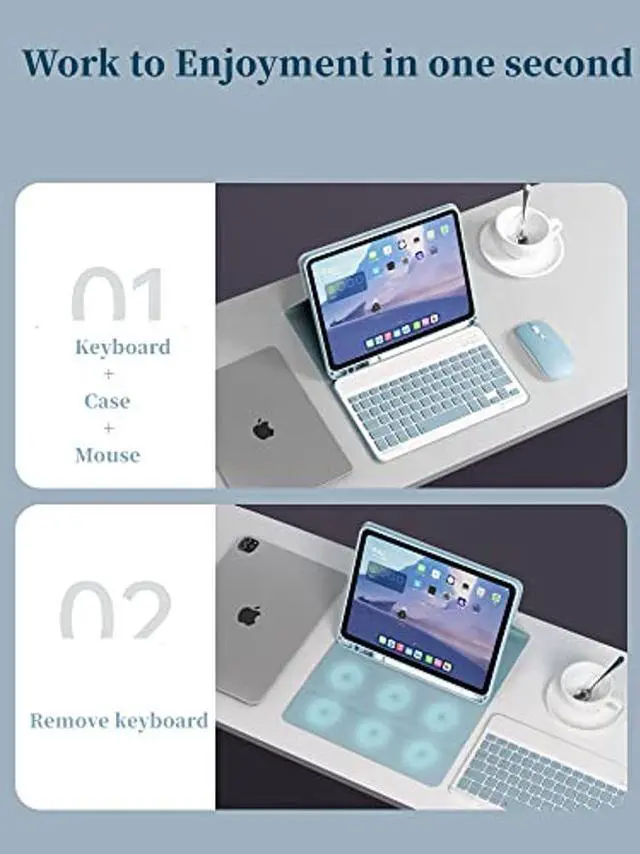 [(Magnetically Detachable Bluetooth Keyboard)] The iPad case with removable keyboard attaches to the case using magnets so you can easily remove the keyboard placement. Separated keyboard for iPad 10
