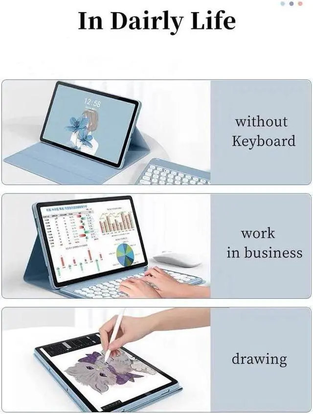 REMOVABLE KEYBOARD---The detachable keyboard case is more flexible to use. When you don't need the keyboard, you can remove the keyboard and use it as a protective cover.